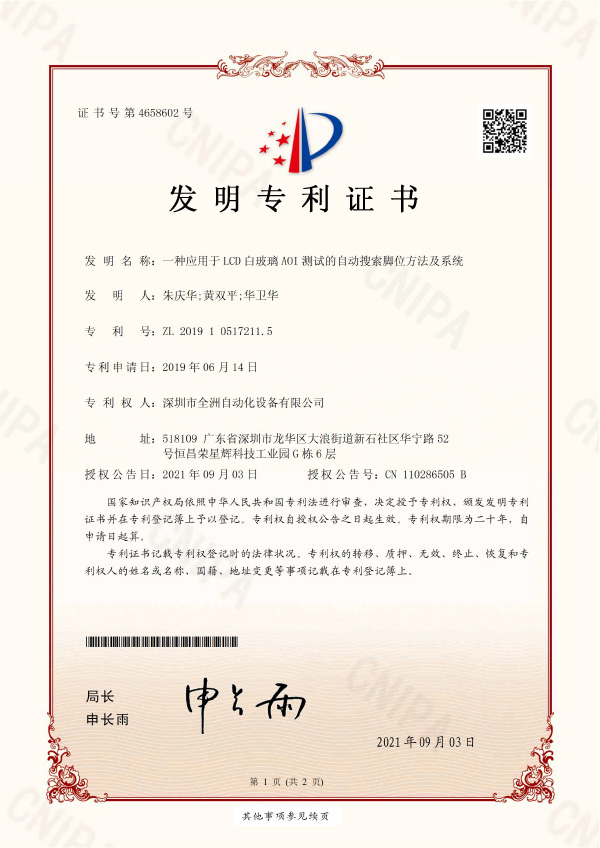 深圳市全洲自動化設備有限公司是一家集研發、生產、銷售為一體的國家高新技術企業,擁有一支強大、資深的技術研發團隊,及完善的生產、銷售服務隊伍。公司致力于LCD和半導體行業的智能制造,先后推出了全自動貼片、裝腳、點膠、固化、切腳流水線,全自動LCD AOI測試機、COG/COB自動AOI測試機、TFT多畫面測試機。并破解行業難題,研發了分辨率達微米級的LCD整模圖像檢測機等高端設備,可應用于LCD/TFT/集成電路/晶圓檢測等領域,有效提升生產和測試效率,保障產品品質。受到了新老客戶的歡迎和好評,與業內眾多知名企業建立了長期合作伙伴關系。公司秉承“誠信經營、科技創新”的經營理念和“團結、合作、進取”的企業精神,竭誠為客戶提供優質的產品,完善的技術服務!讓我們攜手,互利雙贏,共同發展,一起邁向企業美好的新未來、新坐標!